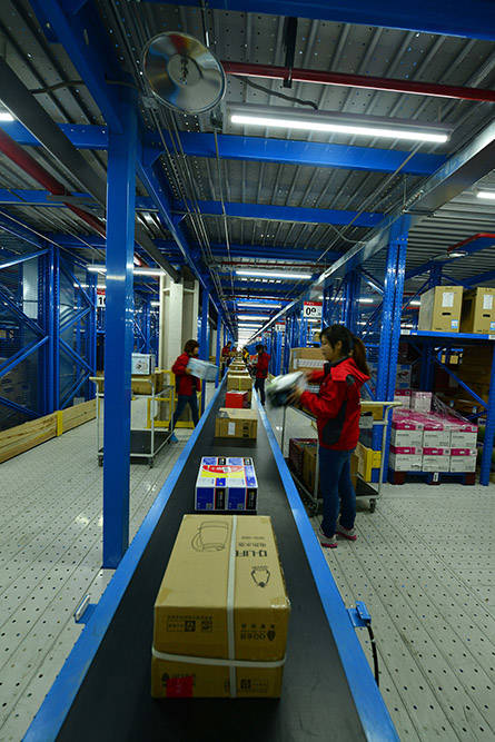 京东位于上海的“亚洲一号”现代化物流中心是当今中国最大、最先进的电商物流中心之一,一期于今年6月完成设备安装调试后开始试运营。该物流中心位于上海嘉定,共分两期,规划的建筑面积为20万平方米,其中投入运行的一期定位为中件商品仓库,总建筑面积约为10万平方米,分为4个区域——立体库区、多层阁楼拣货区、生产作业区和出货分拣区。其中,“立体库区”库高24米,利用自动存取系统(AS/RS系统),实现了自动化高密度的储存和高速的拣货能力;“多层阁楼拣货区”采用了各种现代化设备,实现了自动补货、快速拣货、多重复核手段、多层阁楼自动输送能力,实现了京东巨量SKU的高密度存储和快速准确的拣货和输送能力;“生产作业区”采用京东自主开发的任务分配系统和自动化的输送设备,实现了每一个生产工位任务分配的自动化和合理化,保证了每一个生产岗位的满负荷运转,避免了任务分配不均的情况,极大地提高了劳动效率;“出货分拣区”采用了自动化的输送系统和代表目前全球最高水平的分拣系统,分拣处理能力达16000件/小时,分拣准确率高达99.99%,彻底解决了原先人工分拣效率差和分拣准确率低的问题。