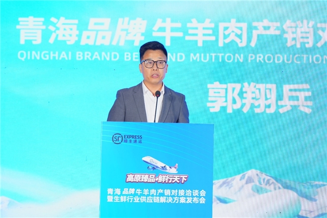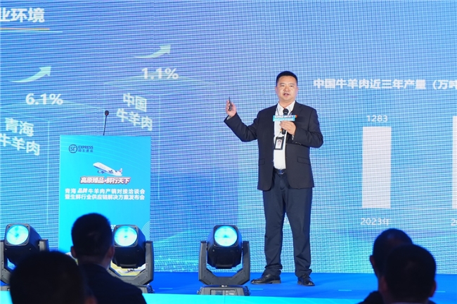 甘青顺丰速运有限公司副总经理何明安介绍牛羊肉解决方案