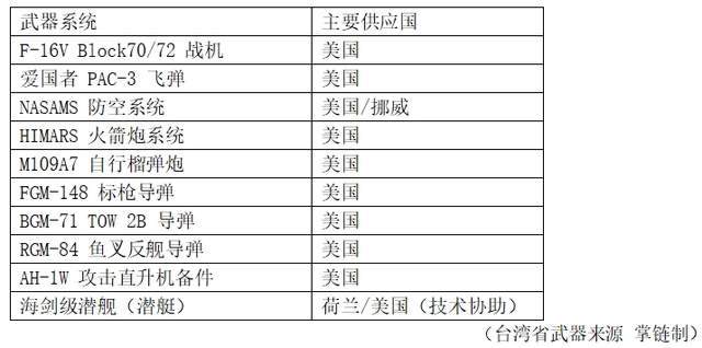 隶属美国国防部的国防安全合作署(DSCA)在12月批准了111亿美元的对台军售案,这是史上最大的一笔对台军售。该方案包括至少八种装备: