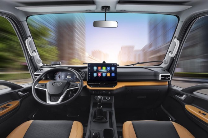 领跑家族的另一名成员——领跑L3PLUS版智威动力以家族化前脸+LED大灯提升颜值;14寸大屏配合“智聆系统”,实现语音唤醒功能,可通过语音指令“解放”双手,让驾乘更智能、更便捷、更安全。此外,机械减震座椅、手机60W快充、845mm低货台等配置贴合城配需求,为商贸运输提供便利。