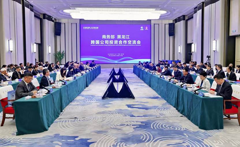 6月11日,“商务部黑龙江跨国公司投资合作交流会”在哈尔滨举行。黑龙江省委书记许勤主持交流会并讲话。
