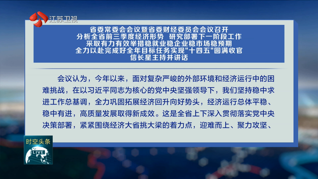 10月17日,江苏省委常委会会议暨省委财经委员会会议召开。