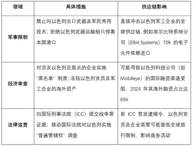 该联盟提出三项核心措施:限制以色列军用物资进出口、审查与以相关的国际合同、推动国际法律追责。这标志着国际社会对以色列的施压从口头谴责转向实质性行动,尤其在供应链领域的追责机制正在形成。