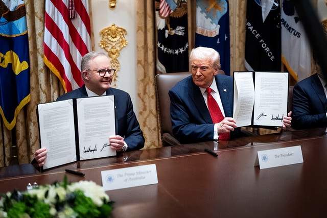 2025年10月20日,白宫见证了美澳关键矿产合作的里程碑时刻——特朗普与澳大利亚总理阿尔巴尼斯签署《美澳关键矿产与稀土开采及加工供应保障框架协议》,以85亿美元的核心投资撬动530亿美元的资源开发价值。这份协议构建了“资金共投、项目共推、机制共建”的三维合作体系,成为AUKUS(澳英美联盟)框架下经济与安全合作的重要延伸。