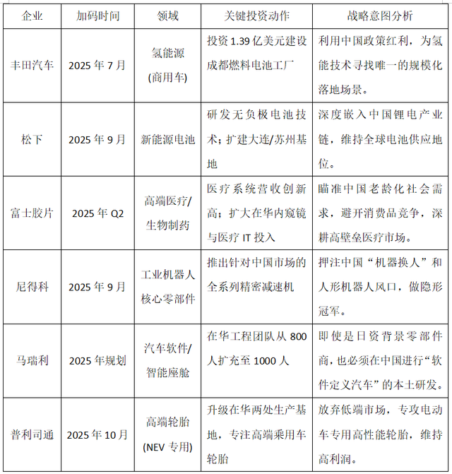 表格内容揭示了日本企业的新生存法则:不与中国企业拼价格,只与中国市场拼未来。
