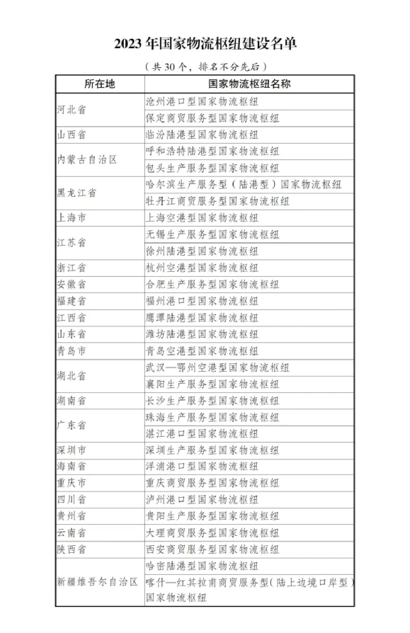 7月28日,国家发改委正式发布2023年国家物流枢纽建设名单,沧州港口型等30个国家物流枢纽入选。入选名单的省、市、区包括广东、上海、重庆、新疆等23个省、市、自治区。