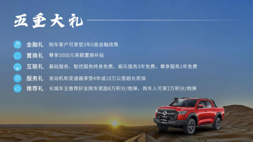 售后服务方面,越野炮还拥有中国最便利的皮卡销售服务网络,网点超2000家,平均服务半径小于50km,让您即使在偏远的地方也能享受快捷便利的服务。