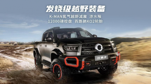 2023款越野炮珠峰版-50万台纪念版,是长城炮专门为纪念第50万台整车下线打造的限量车型,新车采用8848灰专属车身颜色,搭载2.0T+8AT黄金动力组合;原厂配备前后桥电控式差速锁、绞盘、涉水喉、前后铁质竞技杠等硬核装备,越野随心所欲。