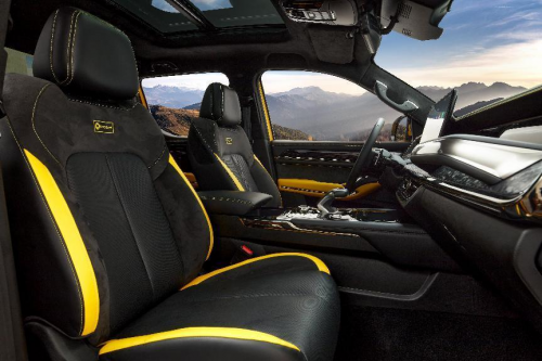 全系标配博格华纳4A+MLOCK智能四驱,标配前后桥电控牙嵌式差速锁,是真正意义上的三把锁,提升脱困能力,越野体验,一路高能。原厂自带百万级越野装备,18寸越野AT胎、K-MAN氮气减震以及12500磅T-MAX绞盘加持,艰难险阻轻松征服。整车升高1.5寸,最小离地间隙239mm,增加涉水喉,最大涉水深度900mm,通过性同级最强。