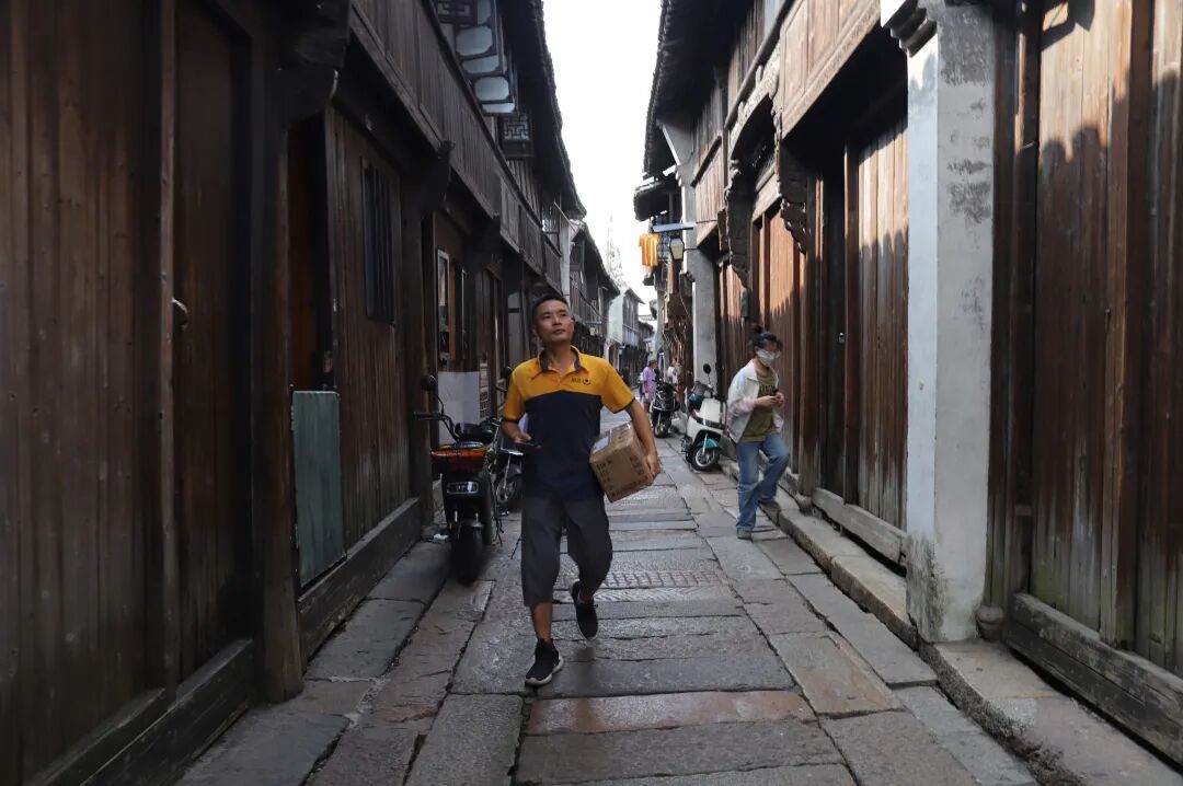 在浙江桐乡,韵达桐乡网点乌镇营业部快递小哥王林峰抱着两件包裹在老街上穿梭,迎面走来,不少商家都会主动和他打招呼。有别于“一手交钱一手交货”的传统生意模式,王林峰和客户之间的感情维系不像是伙伴,更像是朋友。