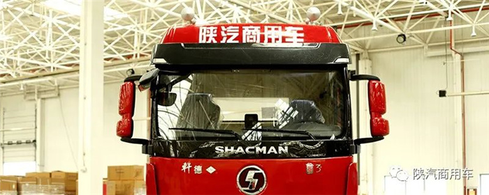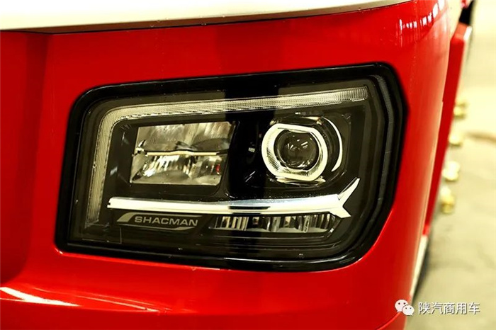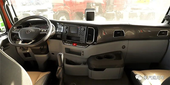这款车车顶位置的“陕汽商用车”五个汉字彰显其品牌影响力,驾驶室顶部设计了遮阳板,可以减少阳光对于驾驶员视线的干扰,为运输作业提供了更高的安全保障。