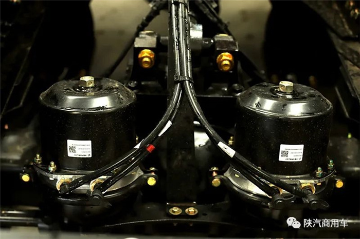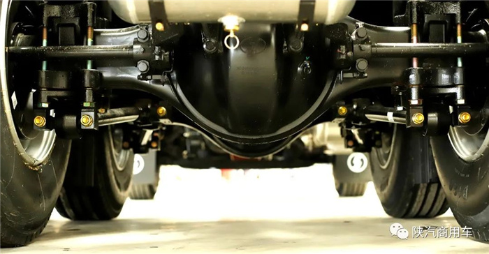后桥采用汉德11.5T免维护车桥,速比3.7,承载能力比普通桥更强,轮端终身免维护,桥壳10万公里换油周期,极大为用户朋友们降低保养的费用和时间,增加运营收益。前桥5.5T汉德免维护车桥,采用前2后3的少片簧设计,带有刹车蹄片磨损报警。