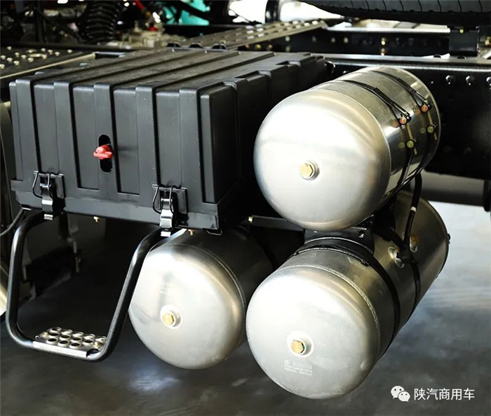 不难看出,轩德·翼3 6X4燃气牵引车不少配置都采用的是铝合金材料,比如变速箱壳体、气瓶、储气筒等,底盘自重更是轻至8.6吨,为用户带来更大的利润空间。