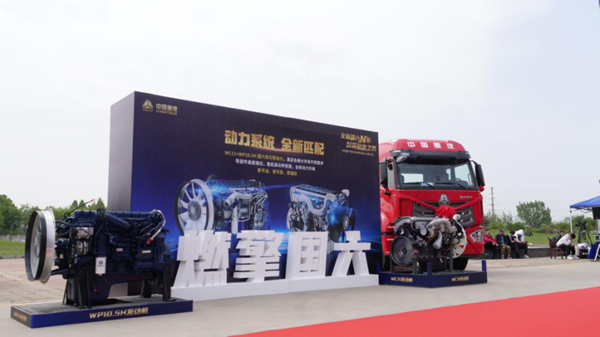 现场除了十台整装待发的牵引车外,还展示了两款豪沃N系主要搭载的发动机总成,即中国重汽MC11 460马力国六发动机和潍柴WP10.5H 460马力发动机,全面满足国六b排放标准。这两款发动机无论从动力、燃油经济性还是B10寿命来讲,都有着十分不错的表现和大量市场数据验证。