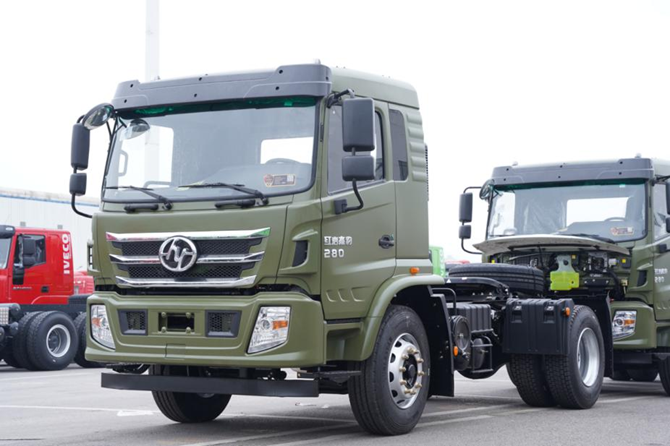 红岩杰豹4×2港口牵引车经过轻量化设计,其底盘自重最低仅为5.2吨,整车自重低至8.1吨,车货总重42吨,使其运载能力大幅提升,充分满足“满载多装货、空车更省油”的需求。同时,轻量化的车身也让驾驶员在进行车辆操控时更加省心省力。而在动力方面,红岩杰豹4×2牵引车可搭载上汽动力7升发动机,最大马力可达280Ps。整车采用同步欧洲的领先重卡技术,匹配法士特8JS85T(6/8档)变速箱、HY300H驱动桥,组合而成的黄金动力链在同类车型中优势显著。