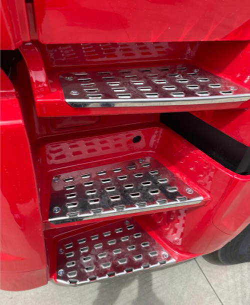 豪沃N系产品前脸面罩格栅采用中国宝塔造型,寓意蒸蒸日上,步步高升,中间衬托重汽LOGO给人以信任。面罩与保险杠结合形成中国鼎元素,内里就有一个大大的元宝图案,寓意生腾,顺遂、财富。金元宝是最广为人知的镇宅招财图案,本身就是财运的代表,现在它被巧妙地植于豪沃N系列新品的驾驶室前脸儿,妥妥地帮助用户招财旺运。除前脸儿的大元宝外,豪沃N系新品车身上也有不少元宝元素,例如三节登车踏板上面就满是小元宝图案!