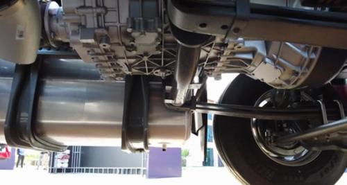 底盘设计上,豪沃N系新品所采用的车架在MAN车架技术基础上,进行了轻量化、标准化、标准孔等方面的优化升级。通过优化达到了国内最轻,且稳定性、可靠性全面提升。此外,豪沃N系新品还采用全新第四代悬架系统,并根据不同版本车型的使用工况和路况特点,对平衡轴总成进行了全新开发,双后桥均采用V推结构,并对V推结构进行优化设计。