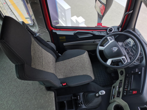 从某种角度来说,健康是人生最大的财富,一辆招财车不但要能挣钱,更得能守护健康。据调查,常年的高强度工作使得颈椎病、腰椎病、胃病三大职业病在卡友群体较为普遍,而这三项疾病又都指向了一个关键点——座椅。评价一款卡车座椅,一是看黏连性和震动响应速度,第二要看安全带是否在座椅骨架上。豪沃N系新品的座椅骨架刚性非常强,带有气囊减震,完全可以保护好司机的安全。安全带和座椅一体化,而不是安装在车架上,这就避免了一上一下安全带收紧,而勒到驾驶员脖子。有了这款座椅,卡友可以真正实现久坐不累,开长途也能精气神十足。