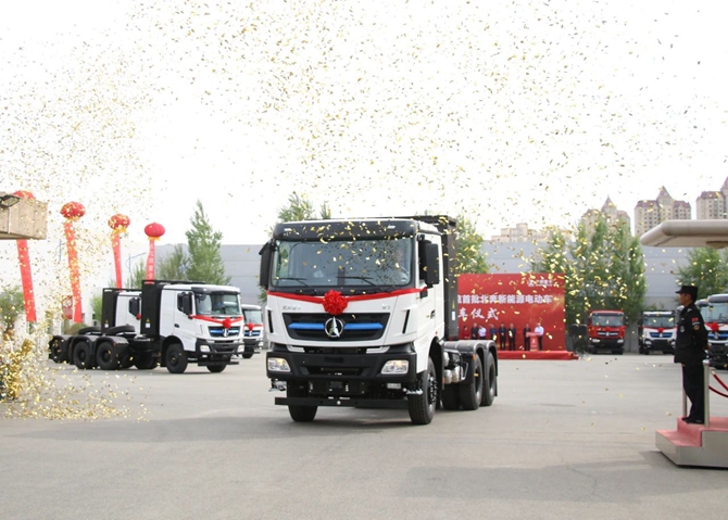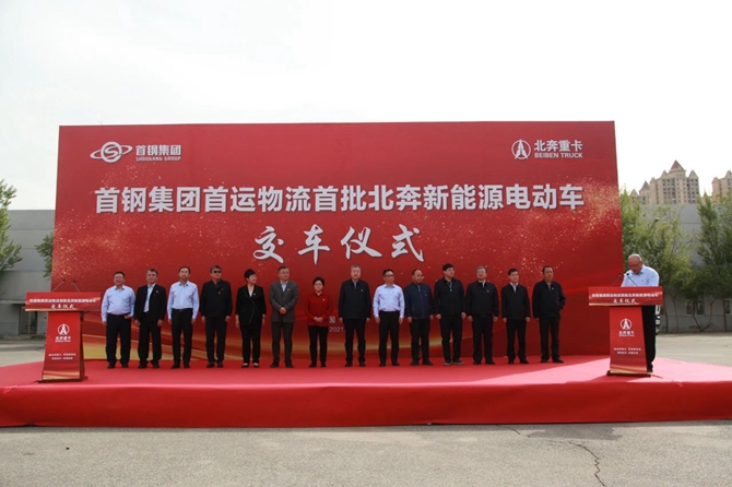 在内蒙古自治区党委、政府,包头市委、市政府的大力支持和牵线搭桥以及在合同落地执行上给予的全方位沟通和协调下,5月10日,北奔重汽在技术中心院内举行首钢集团首运物流首批北奔新能源电动车交车仪式。