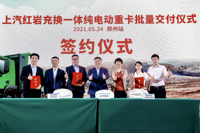 5月24日,上汽红岩充换一体纯电动重卡批量交付仪式在河南郑州盛大举行。这是继上海港口、武安砂石料、山西煤炭、唐山钢铁等场景投运后,上汽红岩新能源重卡在城市渣土细分市场的又一次落地。上汽红岩、国电投、国电投骏玖、国电投(河南)新动力等相关领导,经销商、客户代表以及行业媒体,共同出席本次活动,见证这一盛会的圆满成功。