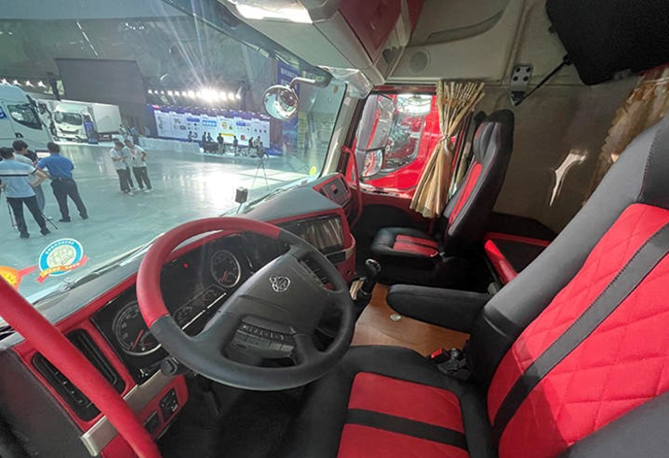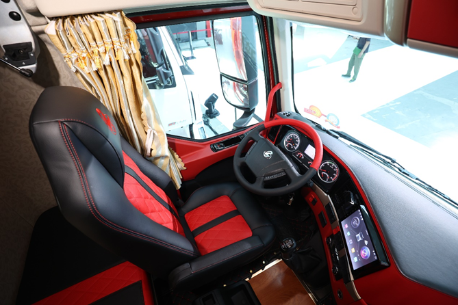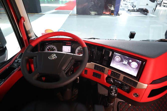 相比于之前的乘龙H5绿通载货车,国六版乘龙H5绿通载货车在内饰上进行了全面焕新升级。最明显的便是驾驶室的整体配色,采用火焰红作为主色调,整体色彩饱满,即便是长期在驾驶室内,也不会产生视觉疲劳。