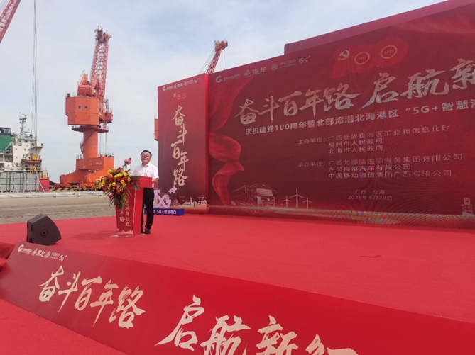 6月28日,庆祝建党100周年暨北部湾港北海港区“5G+无人集卡智慧港口”发布会圆满落幕。广西北部湾国际港务集团有限公司、东风柳州汽车有限公司和中国移动广西公司三方就共建智慧码头、绿色码头签订战略合作协议,并在港区实现国内首次无人集卡与传统集卡的混流作业。本次三家企业强强联合、共同推出此项目,是贯彻落实习近平总书记视察广西重要讲话和重要指示精神,加快融入西部陆海新通道,建设“四个一流”北部湾国际门户港的重要举措,标志着北部湾智慧港口发展又迈出了坚实步伐,助力打造好向海经济。