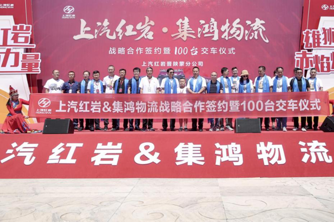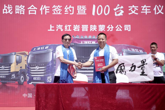 正值建党百年之际,7月8日,上汽红岩&集鸿物流战略合作暨100台交车仪式在内蒙古鄂尔多斯隆重举行。100台崭新的红岩杰狮C6 LNG牵引车正式交付客户,助力当地煤炭绿色高效运输。