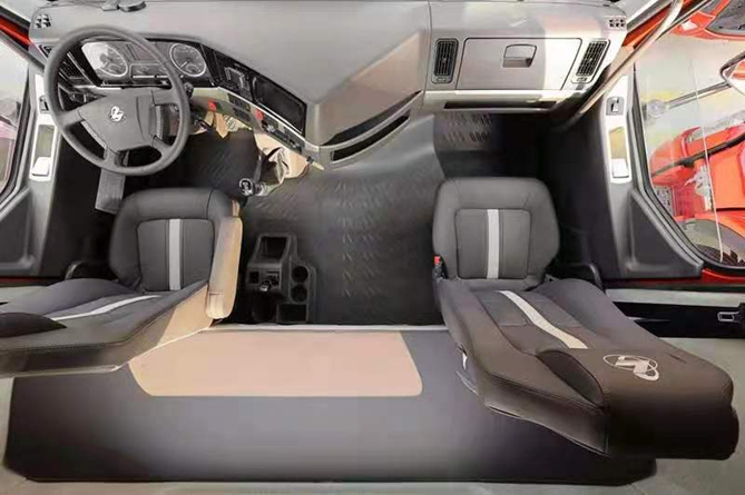 同时,为了让卡友驾乘更加舒适,国六乘龙H5大四缸载货车应用气囊减震按摩座椅,同时座椅升级成皮质面料,舒适度全面升级!给你轿车级享受!