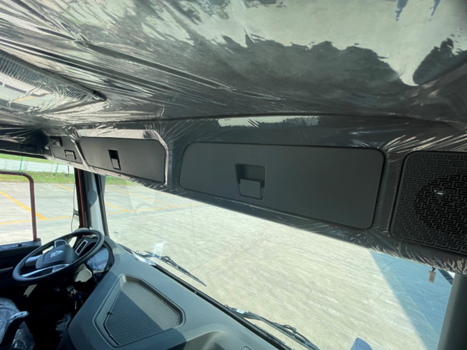 帅气,让你一见倾心:熏黑前脸左侧HOWO品牌标识凸显百万豪沃品牌自豪感,右侧胸针设计,更加年轻有活力。两侧大灯集成设计,带有透镜主灯、转向辅助照明、LED日行灯,提升夜间行驶的可见度,提升行驶安全。前保险杠沿用20款豪沃的高位分段式保险杠,集成中冷器保护栅,离地间隙可达500mm,降低行驶过程中飞石击损中冷器概率,同时提升整车通过性。整体式电动电加热后视镜,外观流线型设计与驾驶室整体相互呼应。三级上车踏步与低位横置门把手,配合90°车门开启角度,更加诠释了整车人机工程设计感。