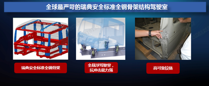 安全,为你保驾护航:驾驶室骨架采用三层钢板,钢板厚度在1.0 — 1.5mm,而竞品车一般最厚才达0.8mm。豪沃驾驶室的加强全钢骨架设计,无论是横向、纵向的撞击,高强度的骨架都能最大限度的保护驾驶室内人员的安全。