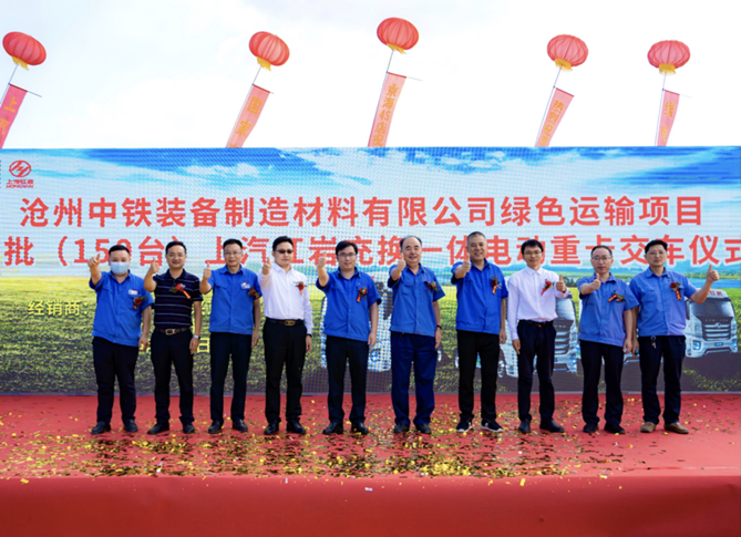 自2009年以来,沧州中铁就与上汽红岩建立起友好合作关系。此前,企业内已有300多辆红岩LNG/柴油自卸车往返于钢厂与货场之间,其可靠性、经济性得到了司机和企业的高度认可。此次钢厂运输绿色转型之际,基于双方深厚的合作基础,以及上汽红岩新能源重卡的技术优势和市场表现,沧州中铁继续选择与上汽红岩牵手,首批采购150辆充换一体纯电动牵引车、自卸车,用于钢卷、矿粉等材料运送。