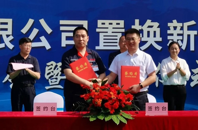 7月30日上午,邢台德龙钢铁有限公司置换北奔重汽新能源汽车启动会暨签约仪式圆满举行。邢台市信都区副区长庞保林,南石门镇党委副书记、镇长尚瑞,信都区生态环境局副局长赵卫东,北奔重型汽车集团有限公司董事李日明、新能源事业部常务副总经理其尔曼、营销公司副总经理赵杰,营销公司大客户部部长李柱、德龙集团执行总裁兼德龙钢铁总经理刘国旗,公司领导肖然、郭晓亮,中层领导及职工代表参加仪式。仪式由德龙钢铁有限公司副总经理王京彬主持。