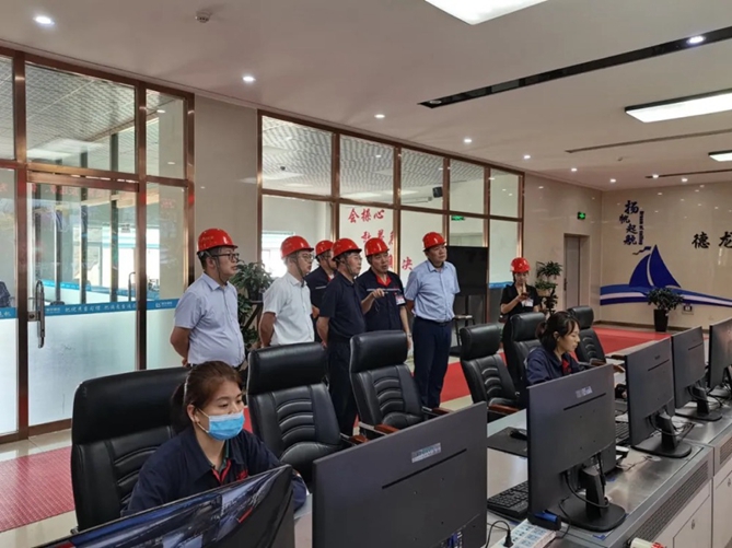 仪式后,深入德龙现场进行全流程参观。在环境保护指挥中心参观现场,郭晓亮介绍了公司环保投入、超低排放、环保评A等方面情况。并分享了德龙在环保碳中和、碳达峰方面的作法。