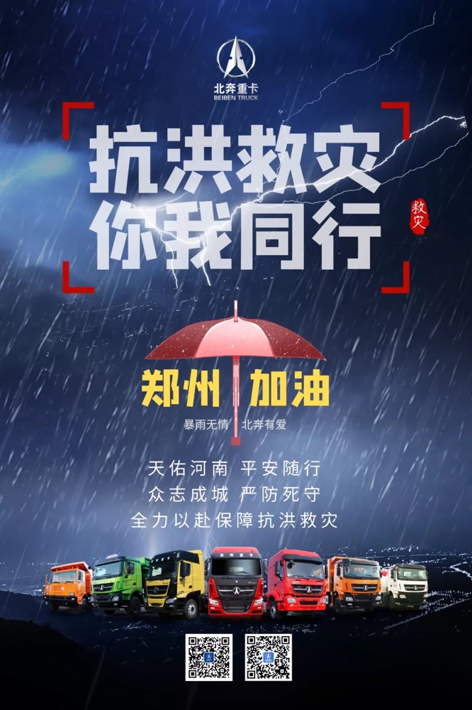 7月17日以来,罕见的极端强降雨袭击河南,造成严重灾害,接下来防汛工作不容忽视。心系灾区,闻“汛”而动,一方有难,八方支援,汛情就是命令,救援刻不容缓,北奔重卡迅速行动,将为抗洪抢险一线提供全天候服务保障,齐心合力,共同抗击洪涝。