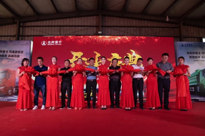 剪彩仪式上,各位领导和嘉宾纷纷上台,手持金剪,一起来见证这隆重时刻,伴随着全场倒计时的呐喊声,金剪落剪预示着迈向财富之路、康庄大道,祝普洱阳辰汽车服务有限公司北奔重卡4S店开业大吉。