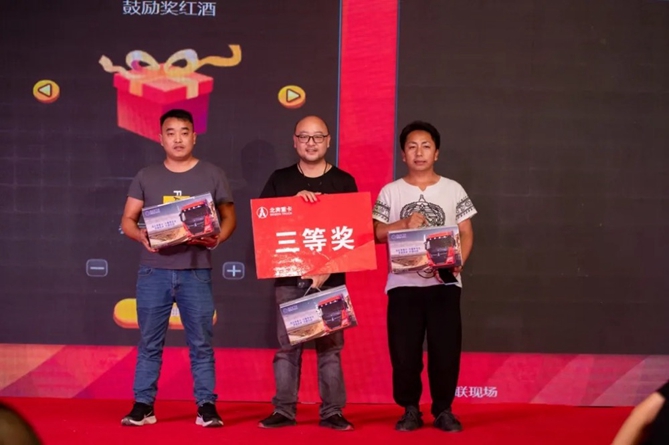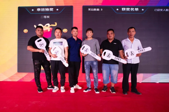 开业庆典答谢晚宴期间举行交车仪式,对刚刚订购车辆的客户交付了象征财富的金钥匙,祝愿客户选择北奔财源滚滚来!同时进行现场抽奖,微信红包雨更是把整场活动的气氛推到了高潮!尹柏松还为两个北奔忠实客户赠予了北奔车模礼品表示感谢!