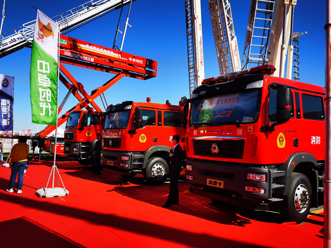 10月12日,由中国消防协会主办的第十九届中国国际消防设备技术交流展览会在北京隆重开幕,来自国内外消防车辆机械、装备器材等领域的近千家企业携各类产品参展,在琳琅满目的消防专用车阵容里,使用中国重汽汕德卡、豪沃重卡、轻卡底盘改装的产品近百辆,占全部参展整车的半壁江山,是本届展会参展数量最多的车辆底盘提供企业,用实力诠释中国高端重卡。
