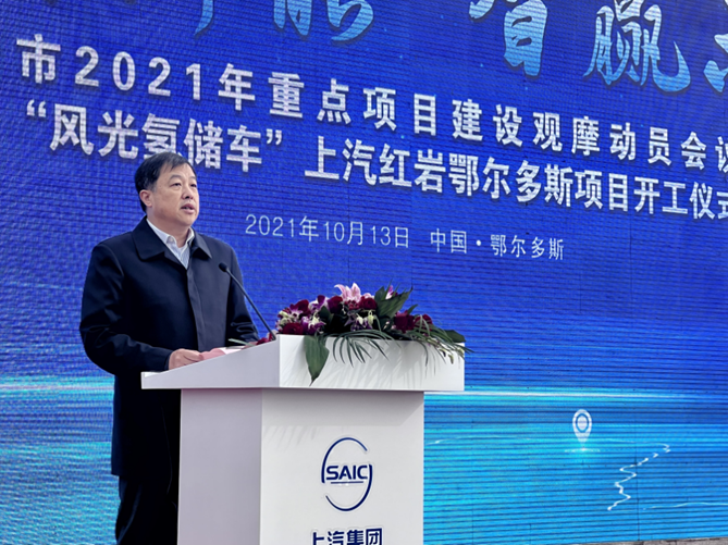 内蒙古鄂尔多斯市委副书记、代市长杜汇良在致辞中表示:“此次‘风光氢储车’上汽红岩鄂尔多斯项目开工仪式,这是鄂尔多斯落实生态目标,推进绿色低碳转型的具体行动,也是推动新能源全产业链发展的重要举措。全市上下以此次项目开工观摩为契机,完整、准确、全面地贯彻新发展理念,聚焦生态优先,绿色发展,坚持不懈,凝心聚力,一切围着企业转,一切围着项目干,一切围着发展办,全力保障重点项目建设,全面掀起项目建设热潮。”