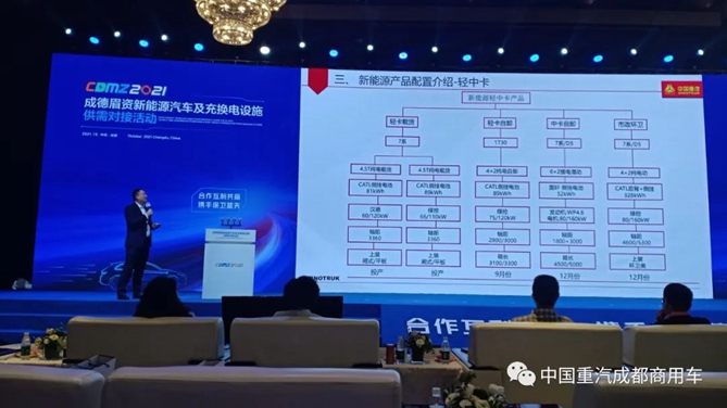 2021年10月21日,以“合作互利共赢,携手保卫蓝天”为主题的“2021 成德眉资新能源汽车及充换电设施供需对接活动”在龙泉驿区举行。活动集中展示和推介“都市圈造”新能源汽车20余款,重汽成商造“豪沃V7-X”换电版新能源自卸车高调亮相活动现场,赢得了参会代表们的好评。