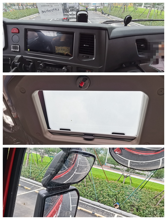 圆润的头部造型,与全新设计的黑色一体式电加热后视镜、阳光雨量自动雨刷,相得益彰。另外,整车驾驶室风阻系数低于0.5,驾驶员最小盲区3.6米,阳光雨量自动雨刷,宽约0.96米前视窗,这些优势写满了安全、高效、经济、舒适。