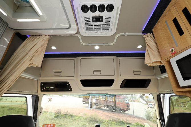 除此之外,这款乘龙T7还采用了大储物吊柜、2000W-3000W逆变器、锂电池副电瓶等生活设施,能够充分满足车内生活储物、家居用电需求,堵在路上也不用担心手机没电。