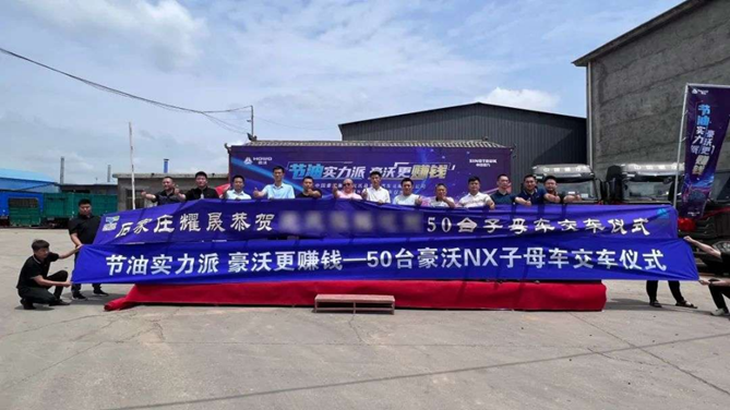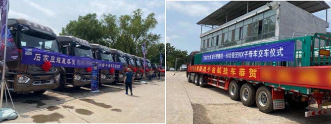 近日,中国重汽冀南分公司联合石家庄耀晟汽车销售有限公司,向石家庄某运输有限公司批量交付50辆豪沃NX子母车!豪沃NX子母车凭借省油、舒适、安全、可靠等优异性能,再一次赢得客户信赖!