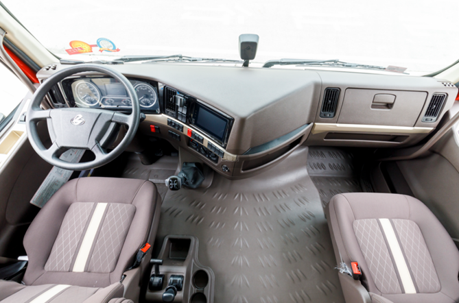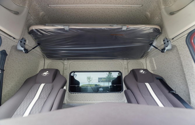 车辆驾驶室采用高顶平地板设计,活动空间充裕,身材高大的司机也能在驾驶室内活动自如,不会有局促感。宽大的卧铺空间令司机在疲劳时能够得到充足的休息,满足驾乘人员的工作和生活需要。