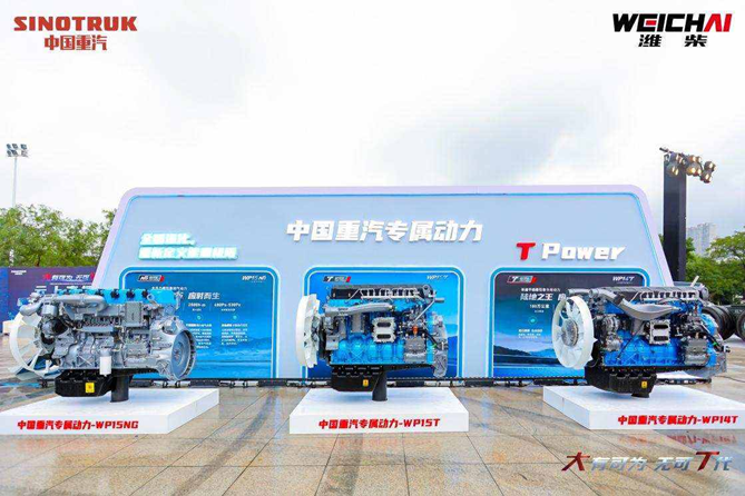 发布会现场,Tpower展区陈列的是潍柴动力为中国重汽专属定制的T系列大马力发动机。