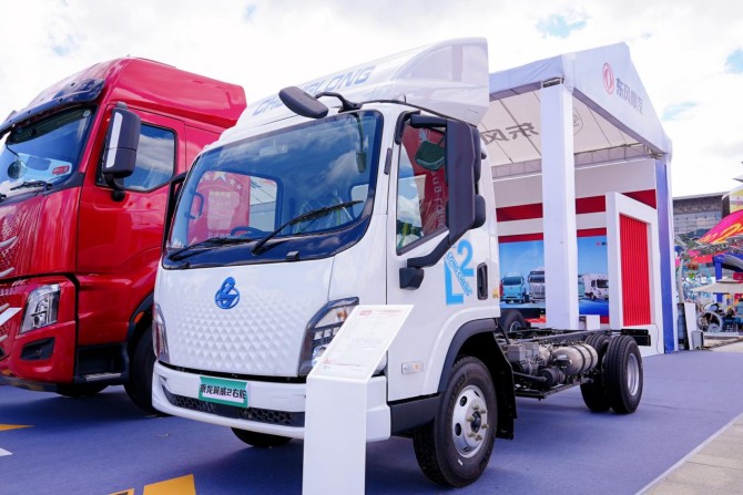 本次展会,东风柳汽乘龙的展台聚焦“绿色、智能、高效”,重点展示了三款针对不同应用场景的明星产品。