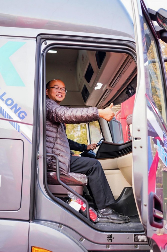 另一位跑资源运输的卡友对乘龙H7 Pro燃气牵引车更为青睐,夸这款车动力强还气耗低,而且驾驶室空间大,开起来毫无压抑感。卧铺又宽又舒适,累了能睡个安稳觉,第二天开车更有精神,他正准备订购一台!