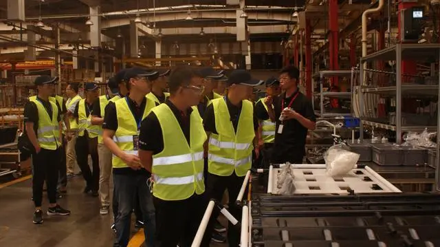 ▲ 考察团在西安康明斯工厂专心致志倾听讲解